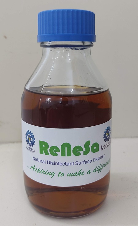 | Expected Impact | Industry - There are many disinfectant surface cleaning products available in the market but they contain harsh chemicals that are not good for the environment. This natural disinfectant surface cleaner can be made at a very low cost and shows antimicrobial properties at par with the commercially available brands. This product will have a market edge because of its non-toxic nature. The consumers today are aware and conscious of the health and environment therefore such products are expected to have a huge impact on the market and the FMCG/surface cleaner industry as well. The greatest advantage of this product is that it can be easily made with inexpensive equipment in a co-operative business model, or a collaborative business model with the rural women self-help groups and achieve a huge socioeconomic impact. Quality of life definitely improves with such safe and inexpensive products that provide protection to the human and pets’ population from acquiring infections. |